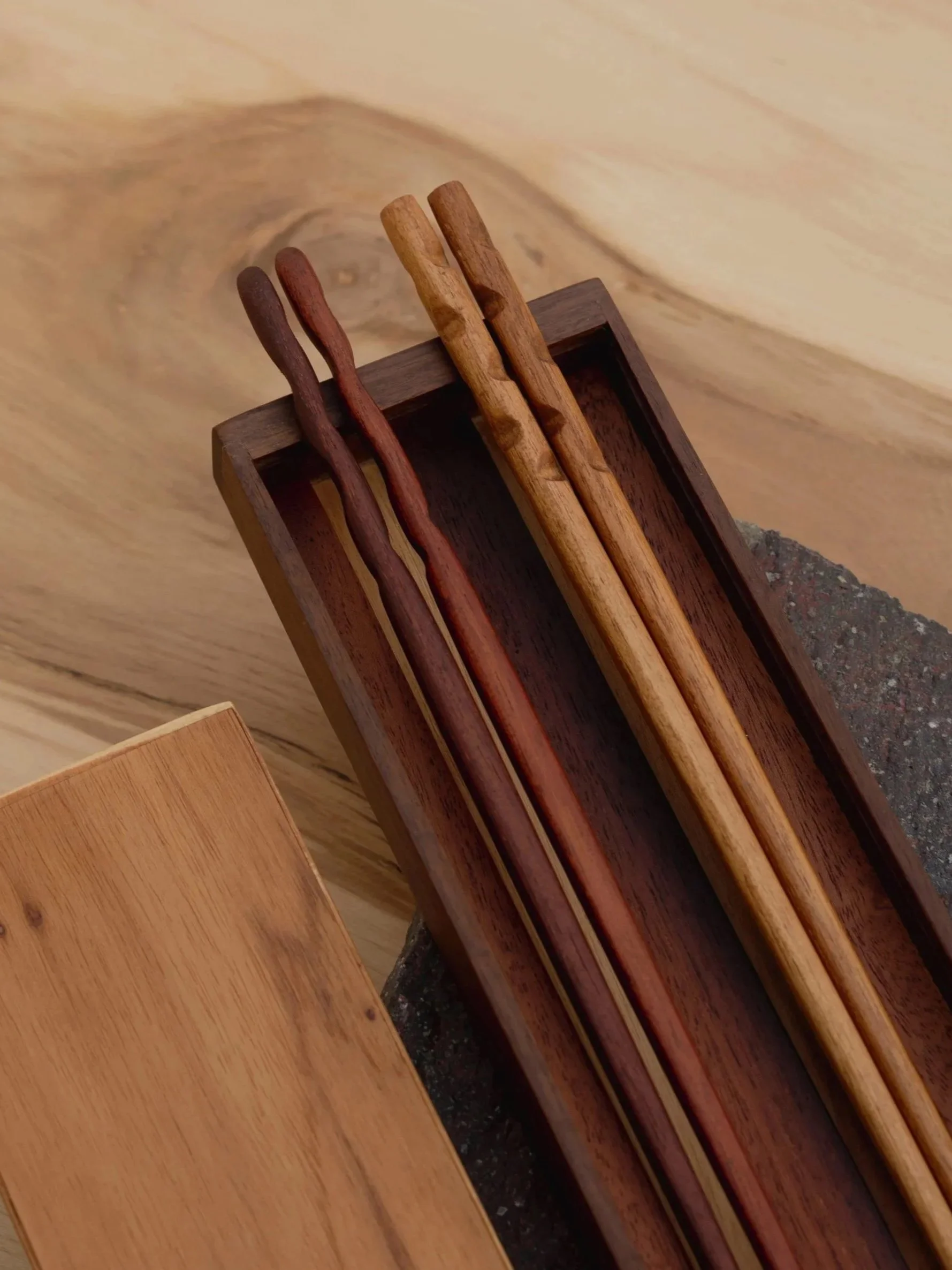 Piezas trabajadas Maito.Pinzas de servicio. 2025 Maito.Juego de palillos chinos. Menú de Degustación. 2025 Serpiente de Madera.Palillos alusivos al Año de la Serpiente de Madera. 2025 Casa del Soldado, Centro Cultural de España.Hecho con Panamá. 2025